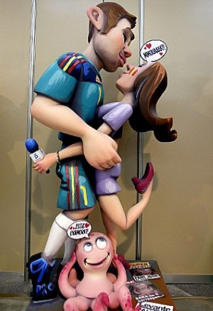 La presentadora de Telecinco y el capitán de la Selección Española protagonizan varios de estos ninots que, de no ser indultados, arderán en las Fallas el próximo 19 de marzo. Carbonero y Casillas protagonizan ninots para todos los gustos, aunque el más popular es sin duda el referente al beso de la pareja tras la victoria de España.