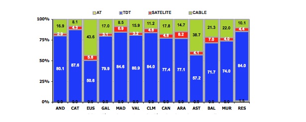 Nuevo máximo mensual de la TDT que supera el 80% en el mes de abril. Por su parte, el Cable (15,1%) mantiene su resultado y el Satélite (4,6%) baja dos décimas.