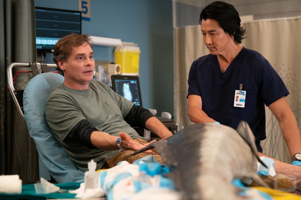 El residente y expolicía encarnado por Will Yun Lee diagnostica al paciente interpretado por Robert Sean Leonard.
