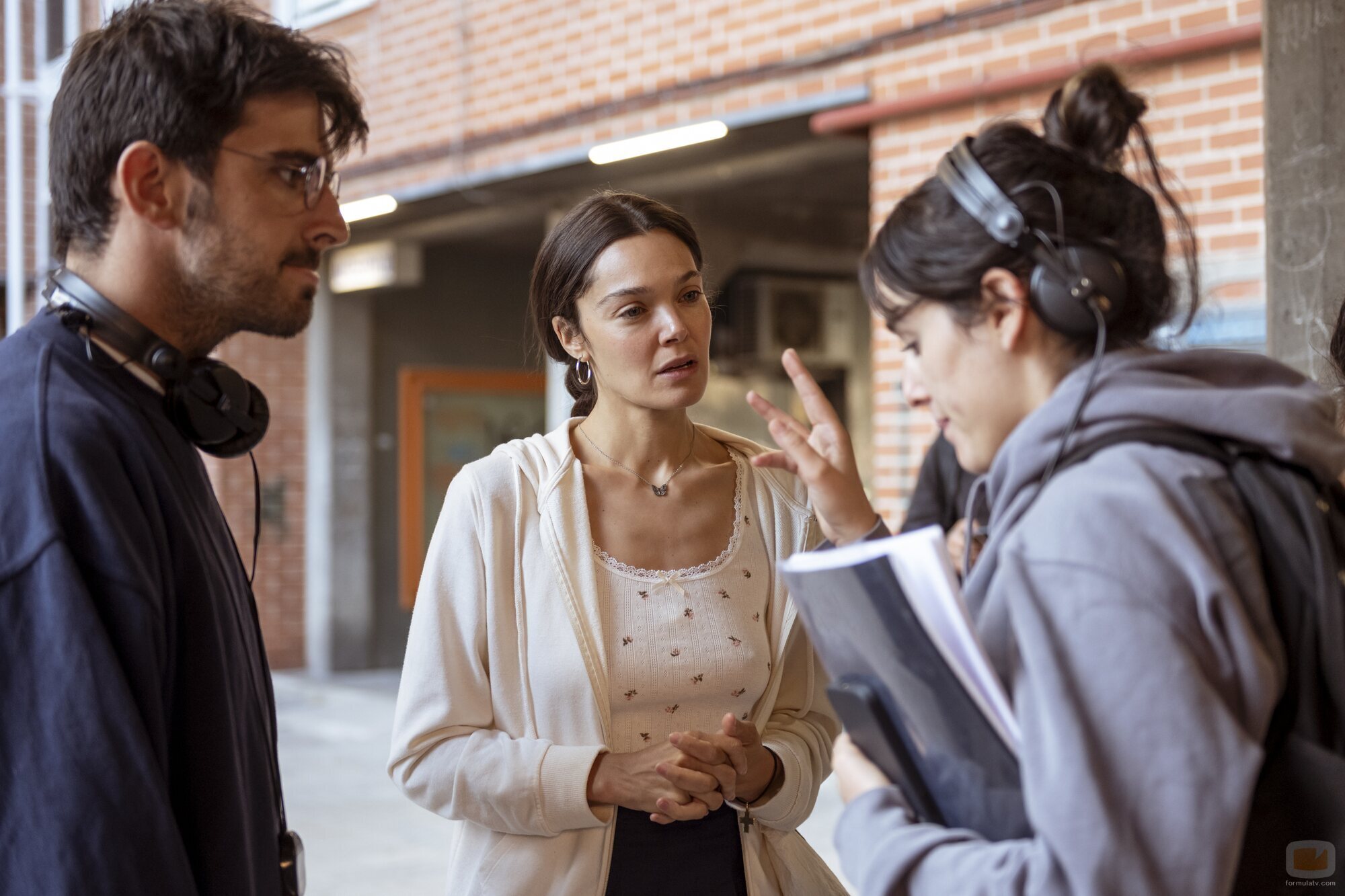 Las cocreadoras Ana Rujas y Claudia Costafreda comparten una conversación durante una de las pausas de las grabaciones de la ficción de Atresplayer.