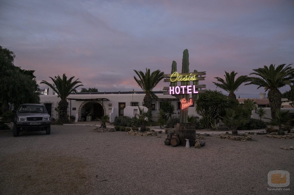 Entrada del hotel El Oasis en el que se desarrolla la mayor parte de la trama de 'Vis a vis: El oasis', ficción de FOX España y Globomedia (The Mediapro Studio).