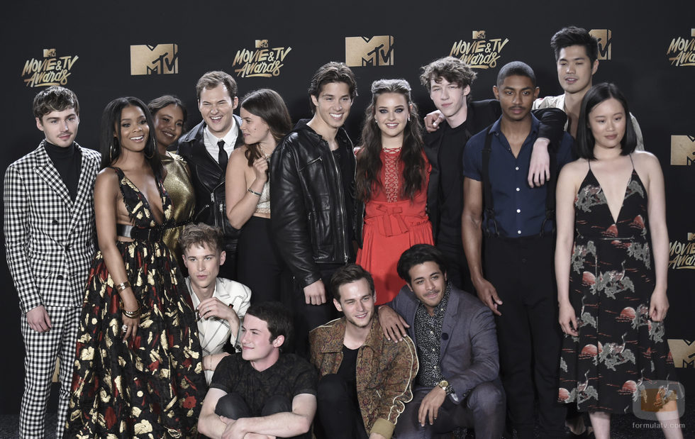 El equipo de actores de la serie de Netflix 'Por 13 razones' posa en el photocall de la gala MTV Movie & TV Awards 2017.