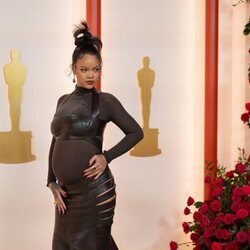 Rihanna posa en la alfombra roja de los Oscar 2023