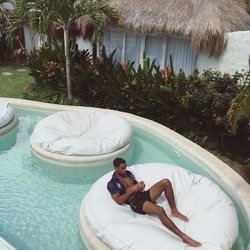 Lucien Laviscount posa en bañador en aguas cristalinas