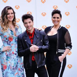 Lorena Gómez, Rosa López y Blas Cantó posan en la rueda de prensa de la final de 'Tu cara me suena'