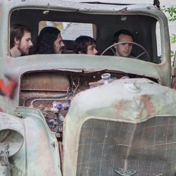 Nao Albet, Santiago Crespo, Manuel Dios y Ricardo Gómez en el camión en 'Cuéntame cómo pasó'