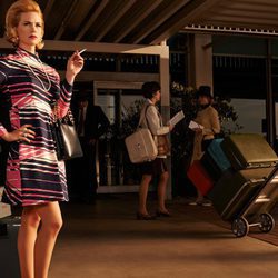 Betty Francis (January Jones) de 'Mad Men' fumando a las puertas del aeropuerto