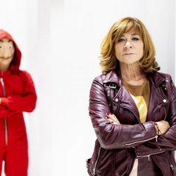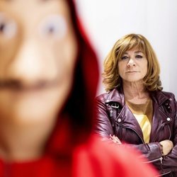Sonia Martínez, directora de Ficción de Atresmedia, tras un personaje de 'La Casa de Papel'
