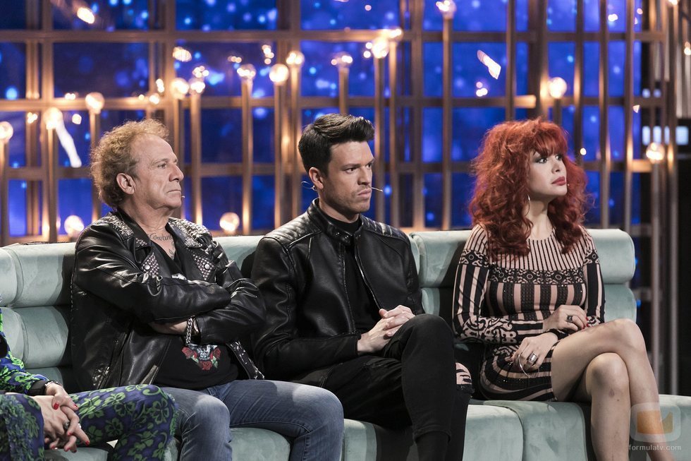 Fortu, Fede y Yurena, sentados en el plató de 'GH Dúo' en la Gala 8, son tres de los aspirantes en la repesca del reality show.