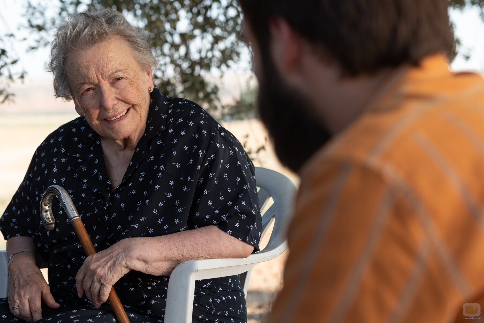La abuela Herminia (María Galiana) charla con su nieto Carlos (Ricardo Gómez) en Sagrillas durante el episodio final de la serie de Grupo Ganga y RTVE.