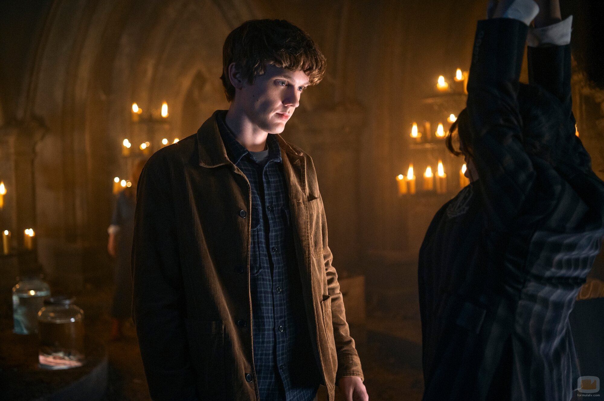 Hunter Doohan y Jenna Ortega aparecen en una escena promocional del capítulo 'Una bandada de tristeza' de 'Wednesday'.