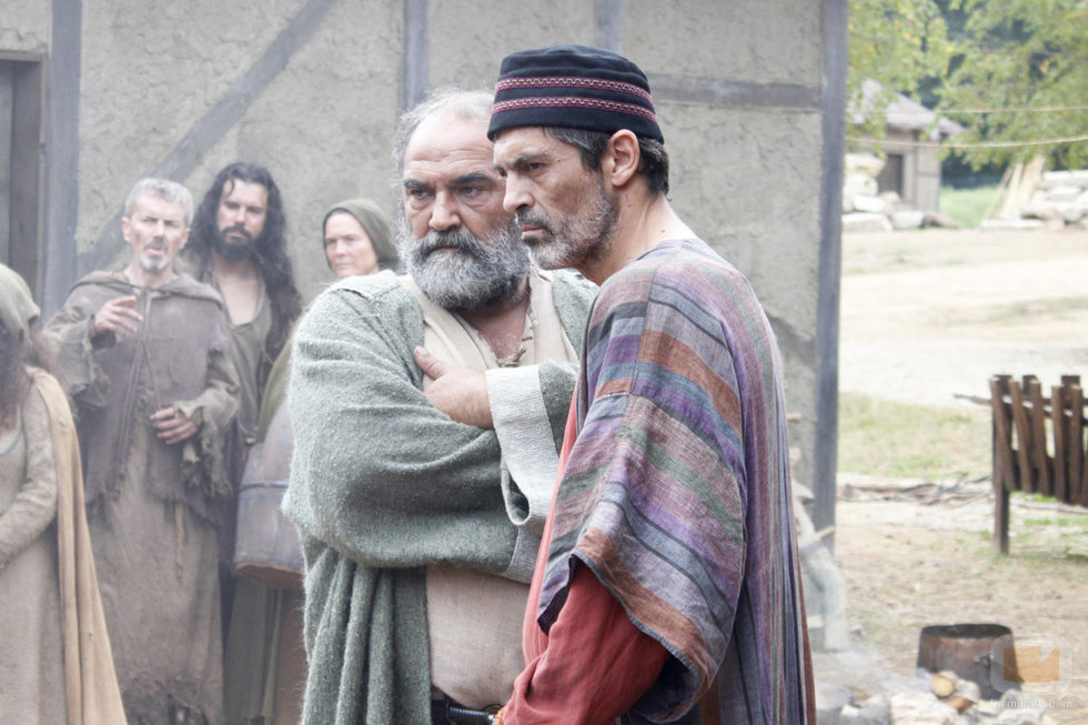 El Monje (Joan Massotkleiner) y Tomás (Xabier Deive) miran enfurecidos en el capítulo "La libertad de los hombres" de 'El final del camino'.