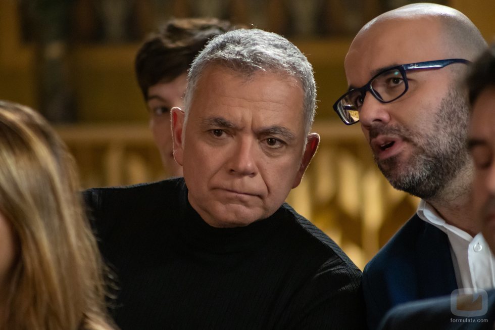 Juan Ramón Lucas y Borja Terán forman parte del supuesto funeral de María Teresa Campos en 'El cielo puede esperar'. Ambos conversan en mitad de la ceremonia.