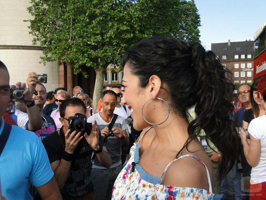 Lucía Pérez se hace fotos con sus fans que la verán interpretar "Que me quiten lo bailao" en 'Eurovisión'.
