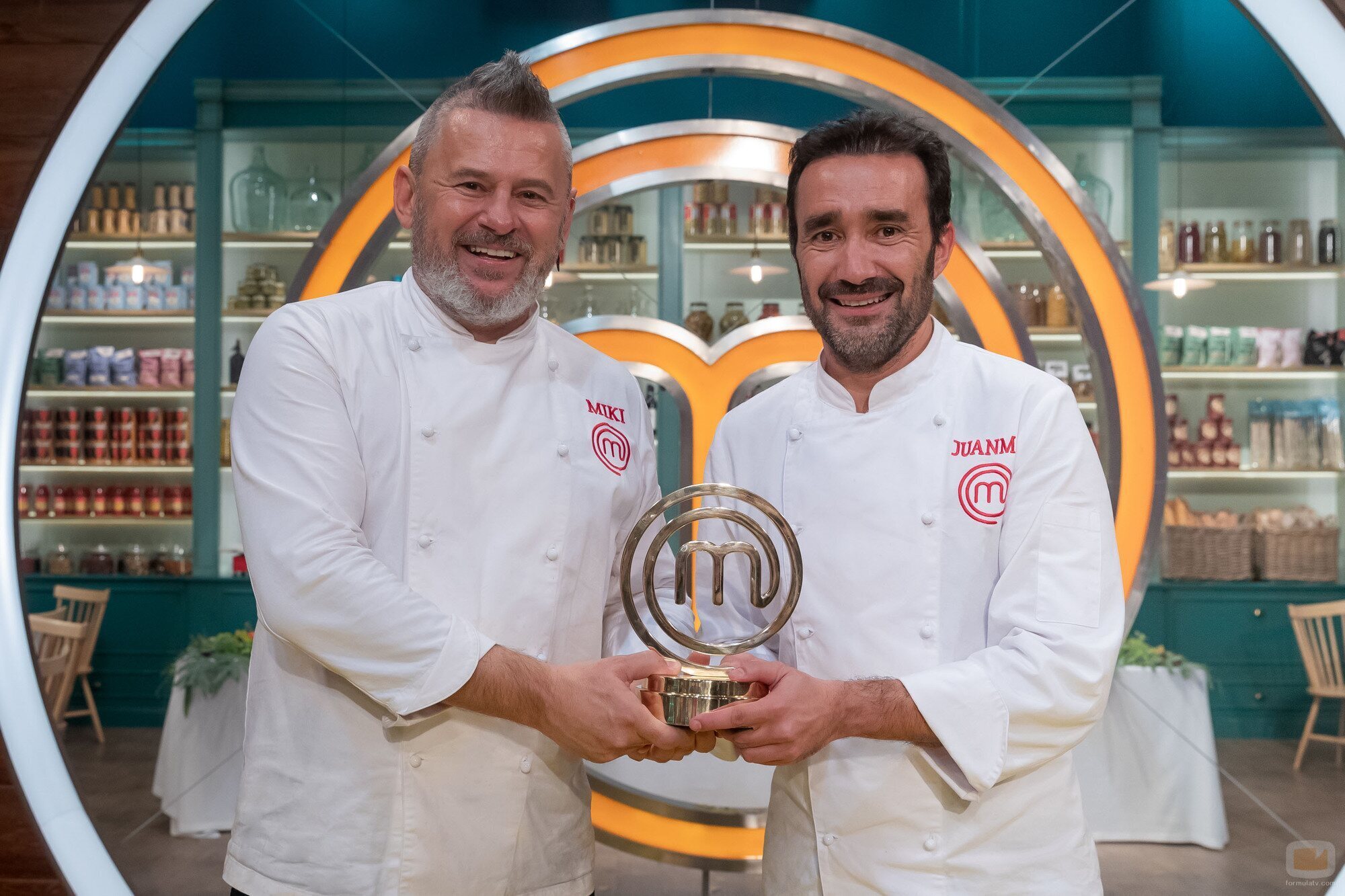 Miki Nadal y Juanma Castaño posan con el premio de 'MasterChef Celebrity 6'