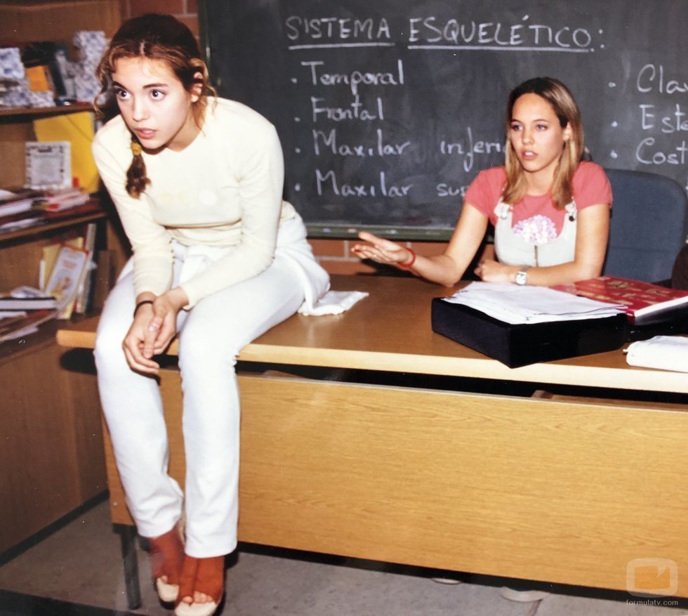 Las actrices, que interpretaban a Mercedes y Sara, durante el rodaje de una secuencia en el ficticio Colegio Azcona.