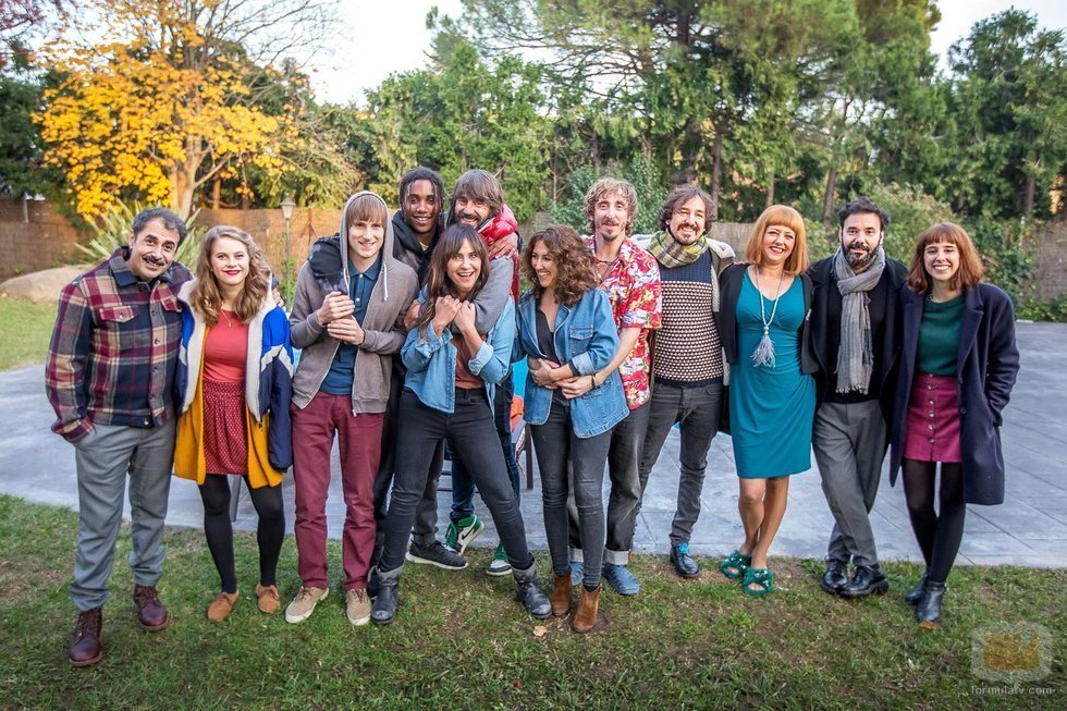 Muchos de los actores de 'Benvinguts a la família' posando juntos tras grabar parte de la segunda temporada de la serie.