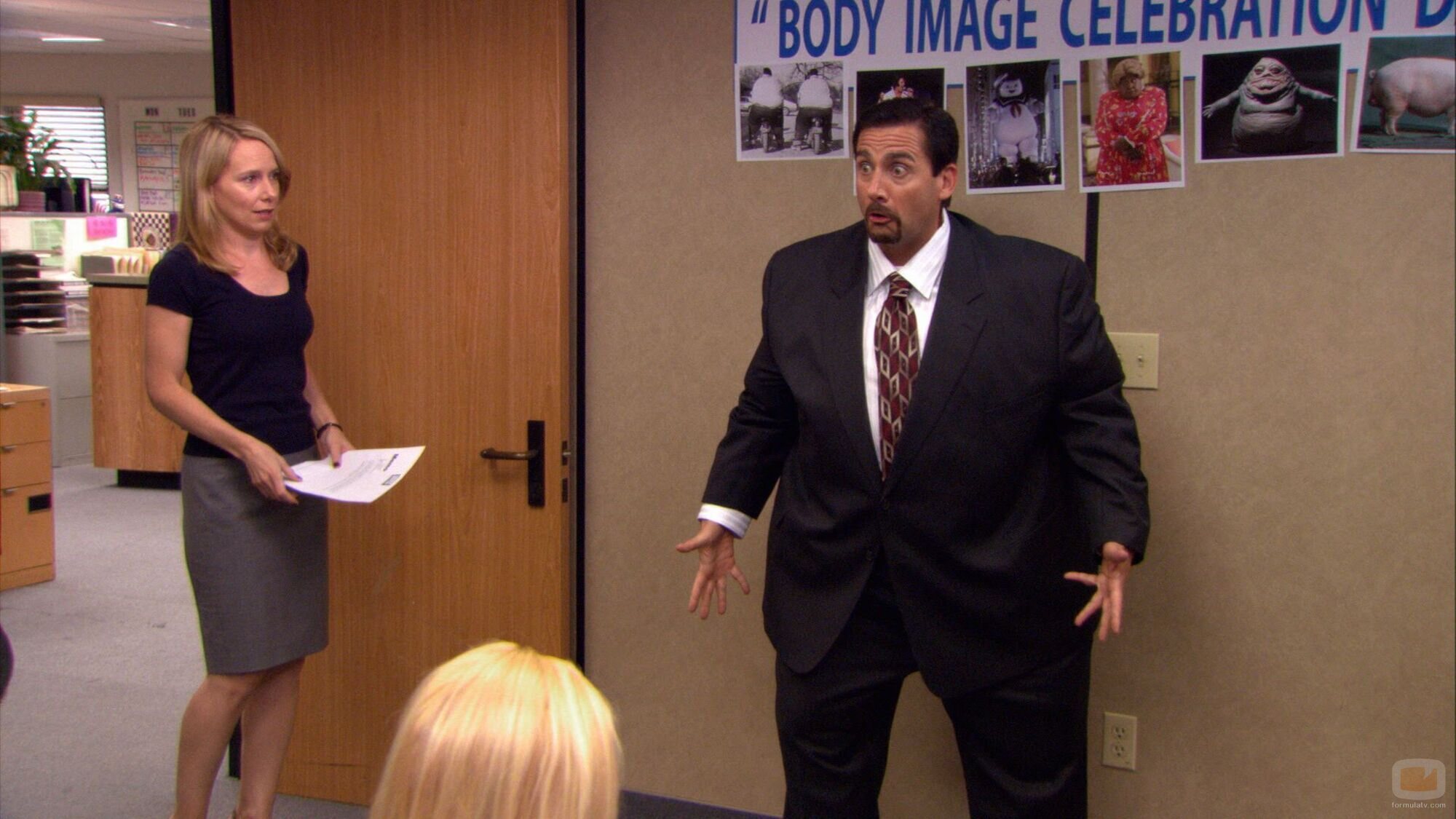Steve Carell y Amy Ryan aparecen en una foto del capítulo 'Concurso de adelgazamiento: 1.ª parte' de la serie 'The Office'.