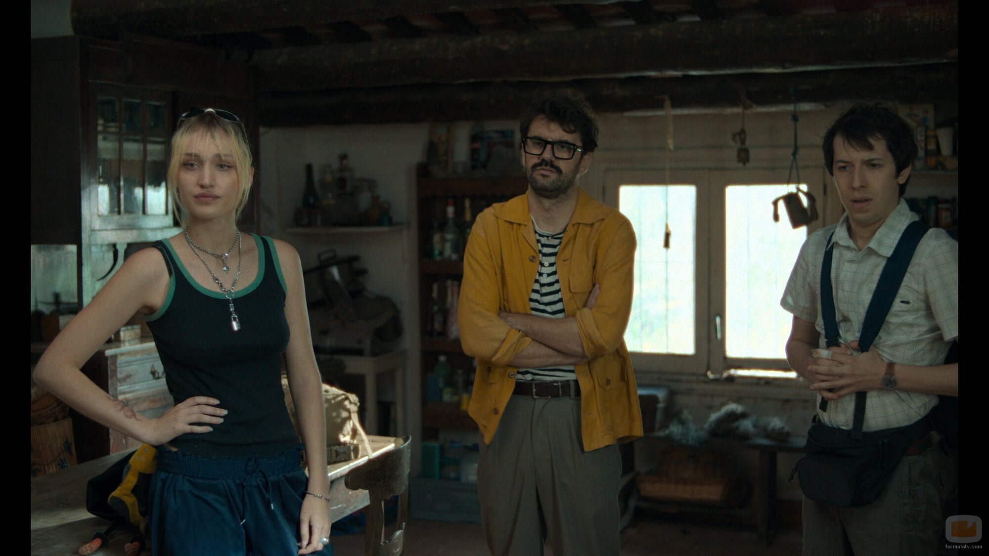 Aitana Batres, Pablo Capuz y Joan Solé aparecen en una imagen promocional del capítulo 1x02 de 'Mamen Mayo' con fecha de estreno el Lunes, 18 de Noviembre de 2024.