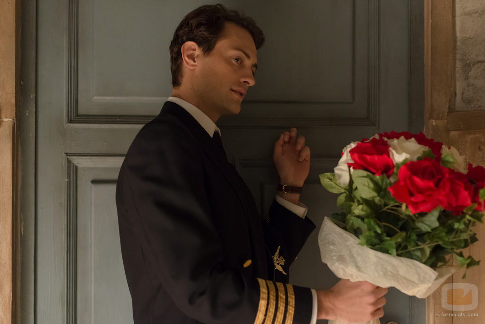 (03x13) Carlos (Peter Vives) llama a la puerta de Ana (Paula Echevarría) mientras sujeta con la otra mano un ramo de rosas rojas.