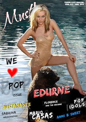 La cantante y concursante de 'MQB' Edurne ocupa este mes de abril la doble portada de Must! Magazine (la otra es para David Bustamante, que posa sin camiseta).