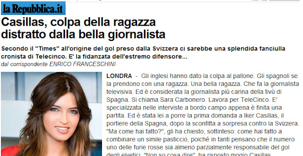 La Reppublica: "Casillas, distraído por la hermosa periodista"