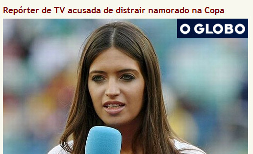 O Globo (Brasil): "Reportera de TV acusada de distraer a su enamorado en la Copa"