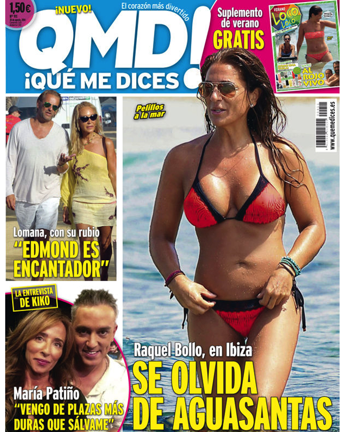La colaboradora del programa de la Fábrica de la Tele ha sido pillada bañándose en una playa de la isla balear luciendo un conjuntado bikini en tonos rojos y negros. Esta instantánea, que recoge la revista ¡Qué me dices! en su portada, muestra a Bollo tranquila y disfrutando del agua. Además, la que fuera pareja sentimental del cantante Chiquetete, intenta pasar desapercibida con unas gafas de sol y el pelo suelto.