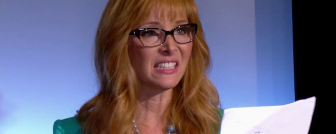 Los responsables de la cadena le indican a Val que todo lo que aparece en 'Seeing Red' es ficción creada por Paulie G y para solucionar el incidente, le ofrecen hacer una prueba para el personaje. UNA PRUEBA, a la que Val acepta, está muy desesperada la pobre. Esto es como cuando Jane Badler tuvo que audicionar para Diana en la versión de 2009 de 'V'. Como curiosidad, entre las audiciones para Mallory, también podemos ver la de la actriz y presentadora Jane Badler.