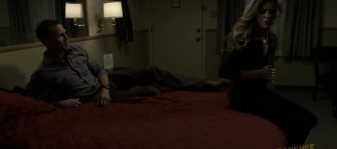 Las cosas siguen su curso en Banshee, pero tras el 3x02 nada será como hasta ahora. Empecemos por Lucas Hood. El sheriff del pueblo mantiene su relación con Siobhan de una manera tranquila y sosegada, y poco a poco van afianzándose como pareja, pero hay algo que no acaba de cuajar entre ambos... básicamente por la existencia de otros factores, como por ejemplo la eterna atracción hacia Carrie que creemos que volverá en algún momento a lo largo de esta tercera temporada. Brock prosigue la aventura con su ex-esposa, pero el trabajo se interpondrá de nuevo entre ellos. Carrie y el coronel Stowe dejan de ser amantes, fundamentalmente porque Carrie ha entrado a formar parte del equipo con el objetivo de saquear el dinero negro del ejército, aunque no se haya producido ninguna presentación oficial (en un momento ya podemos ver a Carrie en el bar de Sugar junto a Lucas y Job). Ella sabe que es peligroso combinar sentimientos con trabajo, y se despide de Stowe, que queda muy sorprendido tras esa repentina decisión.
