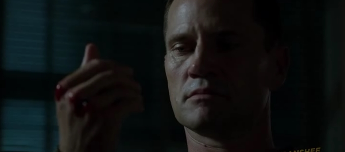 Hay un elemento que siempre ha llamado la atención de 'Banshee' -además de los que saltan a la vista de manera más visual-, y que esta tercera temporada se ha potenciado aún más si cabe: el ritmo, o mejor dicho, el endiablado ritmo con el que han dado inicio el 3x01 y el 3x02, titulado "Snakes and Wathnot". De cara al espectador da la sensación que todos los personajes tienen prisa en acabar sus planes y conseguir así triunfar por encima de sus enemigos; y relacionada con esta idea tampoco podemos olvidar otro concepto que está presente constantemente en la narración: es una serie sin concesiones, sin tregua. No puedes despistarte porqué el final de cada escena trae consigo alguna lucha, alguna relación sexual, alguna discusión, alguna revelación... que provoca que los protagonistas vivan bajo una presión extra que les lleva a actuar de esa manera tan primitiva. En 'Banshee' no importa el guión, lo que realmente engancha es la tensión que puede llegar a generarse.