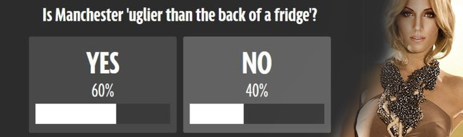 Días después de que la encuesta se abriera llega la sorpresa y es que el 60% de los británicos y lectores del famoso diario "coinciden" con Edurne: Manchester es una ciudad fea. Al final, el pequeño conflicto que hubiera podido desembocar en un auténtico "eurodrama" y podría haber hecho que los británicos privaran de puntos a la madrileña en la final del Festival de Eurovisión se convierte en un nexo entre el Reino Unido y la cantante.
