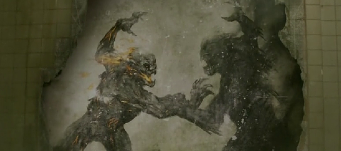 Mientras todo esto ocurre, los "doctores" parece que han encontrado lo que buscaban. Detrás de una pared hay un dibujo que parece muy antiguo en el que hay dos bestias peleando y, al verlo, dicen: Éxito.