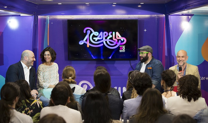 #0 de Movistar+ ha presentado 'AcapelA' este jueves 26 de mayo en la Plaza de Colón de Madrid en un encuentro con los medios, presentado por Fernando Jerez (Director de #0), Edi Walter (Director General de Warner Bros. ITPV España) y Mamen López Monís (directora del programa), acompañados por Dani Reus (Director de la Escuela de 'AcapelA'), el jurado, los mentores y las bandas participantes del talent show.