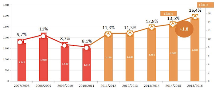 A una semana de concluir el curso televisivo, 'El hormiguero 3.0' ha recogido la mejor marca de todas su historia. El programa de Pablo Motos ha cerrado con una media de 2,9 millones de espectadores (2.887.000) y el 15,4% de cuota, es el programa líder absoluto del access prime time, por segunda temporada consecutiva.