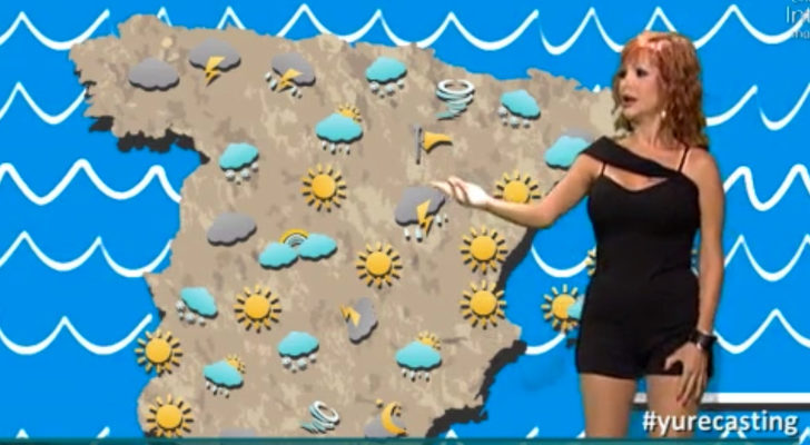 La artista comenzó leyendo el teleprompter con una rapidez asombrosa y recitó casi a la perfección palabras como "otorrinolaringólogo" o "caleidoscopio". Superó esta primera prueba con los aplausos del público y la felicitación de los colaboradores que estaban presentes. La segunda consistía en presentar delante de un croma la información meteorológica, y parece que aquí Yurena, tropezó un poco. No entendía como funcionaba la pantalla y le costaba encontrar en el mapa las comunidades autónomas que Jorge Javier le indicaba entre risas.