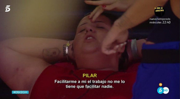 Lo siguiente fue un cúmulo de gritos y malentendidos que acabó con un ataque de ansiedad protagonizado por Pilar: "¡Facilitarme a mí el trabajo no me lo tiene que facilitar nadie! Falsos de mierda, ¡gentuza!". Más tranquila, la chica explicaba en el confesionario lo sucedido: "Yo sé que cada día me supero más, y Yoli no es una persona llena de bondad, como dice. Porque ella sabe dónde herir".