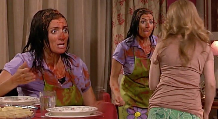En uno de los episodios de la serie, Violeta mostraba a Antonio y Berta una fuente de macarrones, sin nada más. "He hecho macarrones con tomate", comentaba, a lo que el personaje que interpreta Nathalie Seseña preguntaba extrañada: ¿Y el tomate?". Violeta no entendía "por qué tiene que llevar", pero acababa convencida de que "si Berta quiere echarle tomate a sus macarrones con tomate, yo le traigo tomate". Lo que nadie se esperaba era el desastre que iba a armar en la cocina dejándolo todo rojo por culpa de este ingrediente. Ella, incluida.