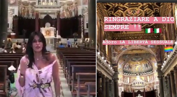 La última idea de Aida Nízar ha sido apoyar la libertad sexual y al colectivo LGTBI en plena iglesia italiana. Lo ha hecho a través de sus "stories" de Instagram donde hemos podido ver que declaraba: "Agradecida a Dios siempre", y añadía: "Adoro la libertad sexual", junto con la bandera arcoíris símbolo del movimiento LGTBI.