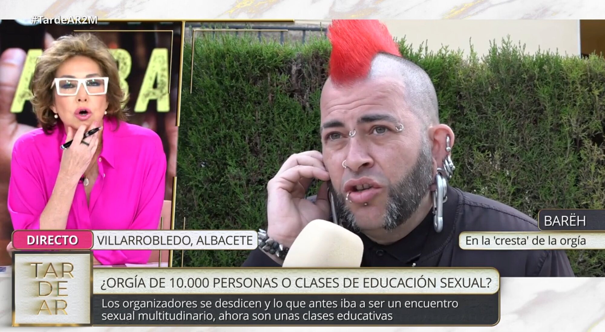 Ana Rosa Quintana vivió una conexión llena de tensión al comienzo de la emisión de 'TardeAR' del 2 de mayo. La presentadora conectaba con Bäreh, uno de los organizadores de la actividad de "Si nos organizamos, follamos todxs", en la que buscaban concienciar sobre la sexualidad y el consentimiento durante el Viña Rock. Sin embargo, los medios de comunicación magnificaron el cartel donde se anunciaban las actividades, asegurando que se iba a producir una orgía de 7.000 personas, que era el número de suscriptores que tenía el canal de Telegram.