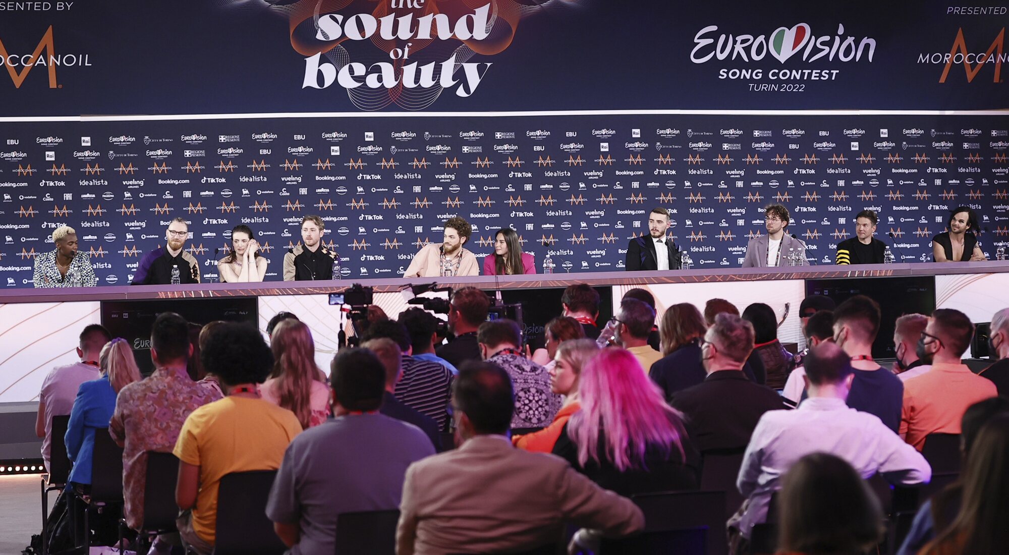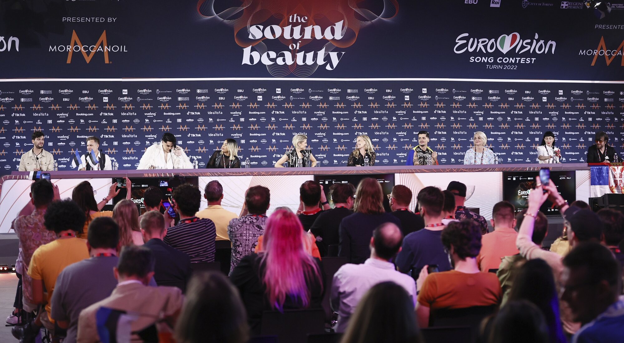 "Es algo que fue parte de mí durante mucho tiempo y recuerdo que, en 2014, vi a Conchita Wurst y me sentí tan enamorado", relató Riley, con una voz cargada de emoción, dado que la ganadora de Eurovisión 2014 cambió su vida, mientras se enfrentaba a "muchas dificultades para amar lo que Conchita representaba". "Gracias por tenerme aquí. Que permitieseis que Australia participe ha cambiado realmente mi vida", declaró además el artista. Jakobs fue la siguiente en hablar y compartió su deseo de celebrar su clasificación con los familiares que la acompañaban en Turín, antes de mencionar lo apoyada que se sentía en el festival. "Estoy tan feliz de este apoyo que estoy recibiendo de estos preciosos países, no me lo puedo imaginar", confesaba la artista que, "tan solo tres meses atrás, era prácticamente desconocida, incluso en Suecia". "He sido una artista indie durante muchos años y esto significa mucho para mí, no puedo expresarlo con palabras", añadía Jakobs, para después romper a llorar, emocionada.
