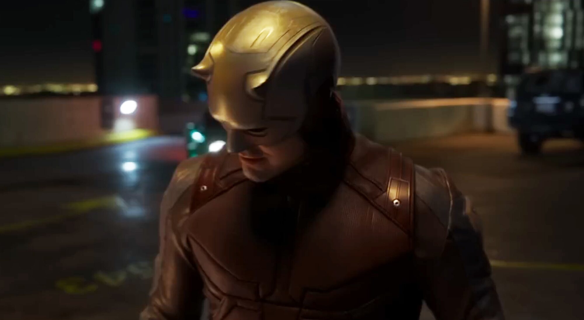 La implicación de Cox en la próxima serie de Marvel Studios para Disney+ se desveló con su segundo tráiler, que mostraba a Daredevil posicionándose acrobáticamente junto a la protagonista, Jennifer Walters, con un plano lejano. Después, se mostraba progresivamente el traje rojo de abajo a arriba, pero el avance cortaba justo antes de llegar a la cara. Unas semanas después, Marvel ha compartido un nuevo adelanto que completa ese movimiento de cámara y que, finalmente, nos permite echar un vistazo completo al vigilante nocturno.