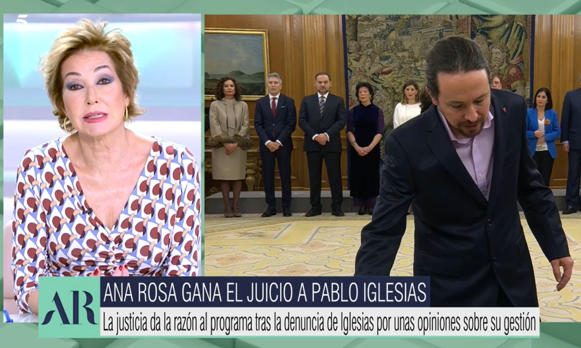"Él pidió rectificación dos veces y no lo hicimos porque entendíamos que no teníamos que hacerlo", explicaba Ana Rosa Quintana. El fallo del juez impone al exministro el pago de las costas del juicio y ni 'El programa de Ana Rosa' tendrá que rectificar ni tampoco compensar de forma económica al antiguo líder de Podemos. No obstante, Iglesias "tendrá derecho a recurrir" la sentencia, como ha recordado la periodista.