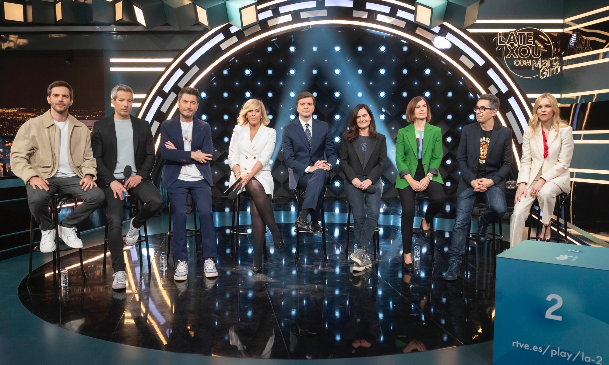 Una vez en la estación, descubrimos quiénes serían nuestros compañeros de baile: otros dos periodistas de Madrid. La rueda de prensa empezaba a las 16:00, así que comimos en el comedor de RTVE y a las 15:30 nos llevaron a una sala de invitados. Allí pasamos una hora hasta que llegaron los medios de comunicación catalanes. Una hora en la que ensayamos juntos el baile y preparamos nuestras preguntas. Con algo de retraso nos llevaron hasta el plató de 'Late Xou', donde esperaban rostros como Carlos del Amor, Marc Clotet, Berto Romero o María Eizaguirre, entre otros muchos. No obstante, perdieron rápidamente el protagonismo.