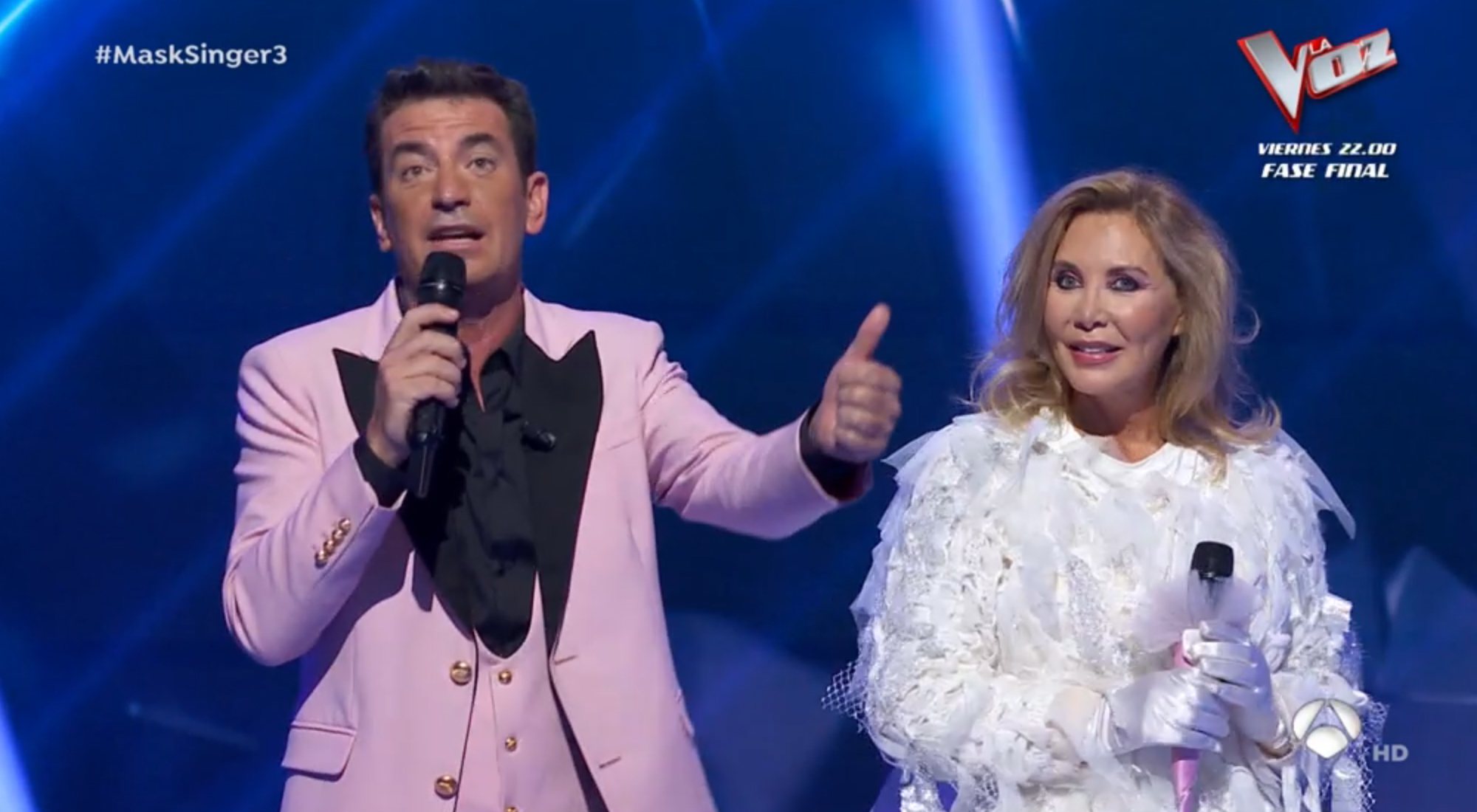 La noche del miércoles 18 de noviembre, Antena 3 emitió la tercera gala de 'Mask Singer: adivina quién canta', en la que los investigadores y el público pudieron descubrir una nueva identidad, de uno de los participantes, oculta tras una de las máscaras: la de Unicornio, que escondía a Norma Duval. Así, la vedette, actriz y presentadora tuvo que despedirse del programa tras Georgina Rodríguez y Pepe Navarro, eliminados en la primera y la segunda gala, respectivamente.
