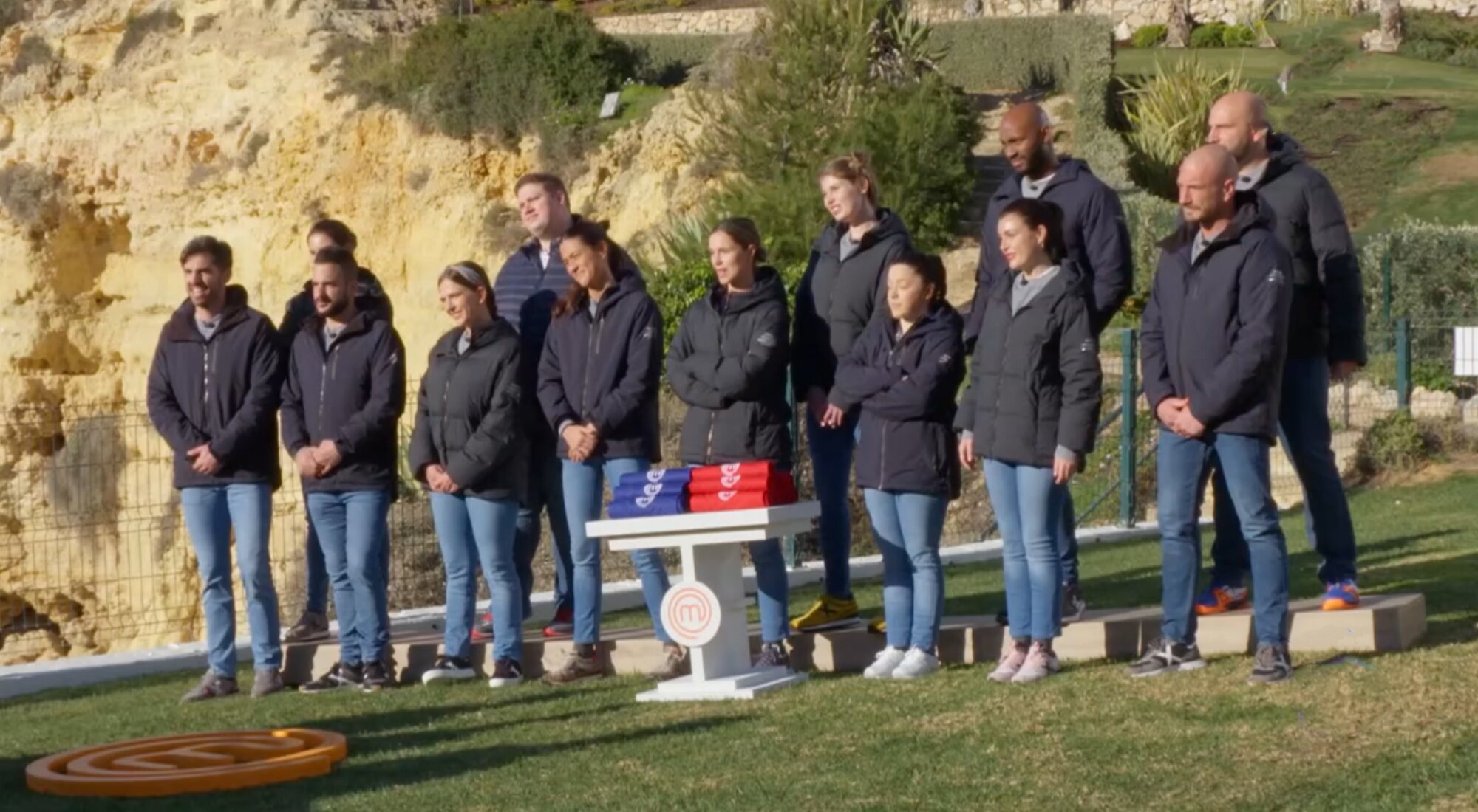 Para la prueba grupal, el equipo de 'Masterchef' se trasladó a El Algarve, en Portugal, donde debían replicar un menú diseñado por el chef Henrique Sá Pessoa. Para ello, los jueces designaron a Luismi y Jokin como capitanes de los dos grupos, tras lo cual eligieron a sus compañeros por turnos: el primero, que se vio superado por la capitanía, trabajó junto a Teresa, Patricia, Iván, Eva, Giraldo y Julia; mientras que el segundo formó equipo con Yannick, Adrián, Claudia, Paula, David, María Lo y Verónica, que fue nombrada como la mejor aspirante de la prueba. El reto concluyó con el primer equipo presentando platos satisfactorios, suerte que no corrió el segundo, cuyos fallos fueron más que evidentes para los comensales. Por esa razón, el grupo de Jokin se libró de la eliminatoria, mientras que el de Luismi recibía los temidos delantales negros.