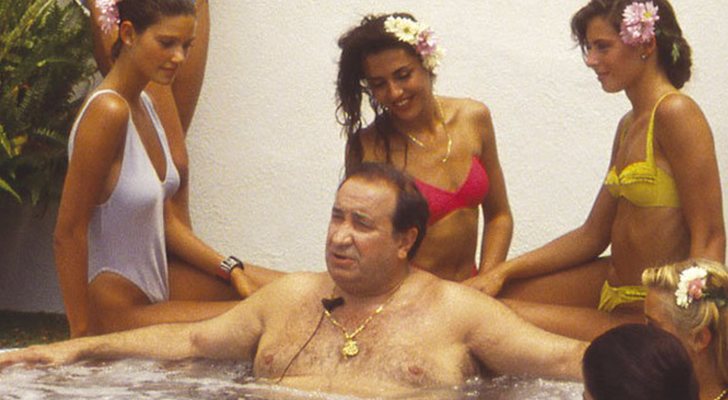 Jesús Gil hablando sobre lo que le venía a la cabeza dentro de un jacuzzi en el que le acompañaban mujeres jóvenes en bikini. La imagen de por sí ya resulta escalofriante, pero si nos paramos a pensar en cómo ese tratamiento de la "mujer florero" acompañando al hombre rico, entonces alcalde de Marbella, y riéndole gracias que no acababan de serlo, 'Las noches de tal y tal' parece más una película de José Luis López Vázquez que un programa de televisión. Pero así era la televisión de los noventa en la que dentro de un programa de variedades, con sus actuaciones musicales, sus entrevistas y sus sketches, tenía cabida el jacuzzi de Jesús Gil.