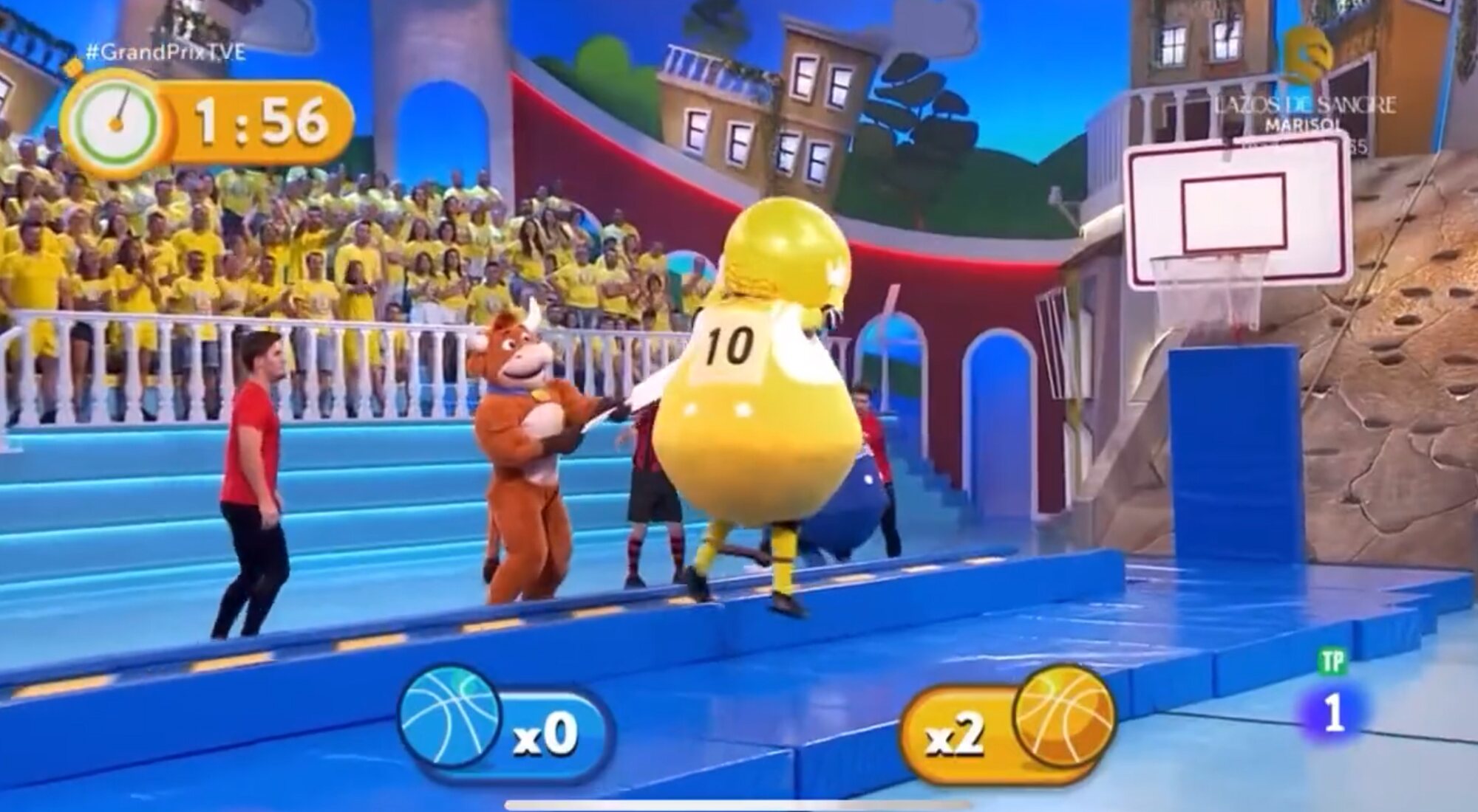 La tarea de la vaquilla, en esa ocasión, consistía en entorpecer dicha labor al equipo de Aguilar de Campoo, vestidos de amarillo. Fue entonces cuando produjo una reacción inesperada por parte de uno de los concursantes, cuando la mascota del programa logró tirarlo de la cinta, puesto que le lanzó la bola antes de continuar con el juego. Un movimiento por parte del castellanoleonés que generó muchas risas, incluidas en la persona oculta bajo el disfraz, el deportista Miguel del Pozo, quien admitió que "si hubiese estado en el lugar del concursante, hubiese hecho lo mismo".