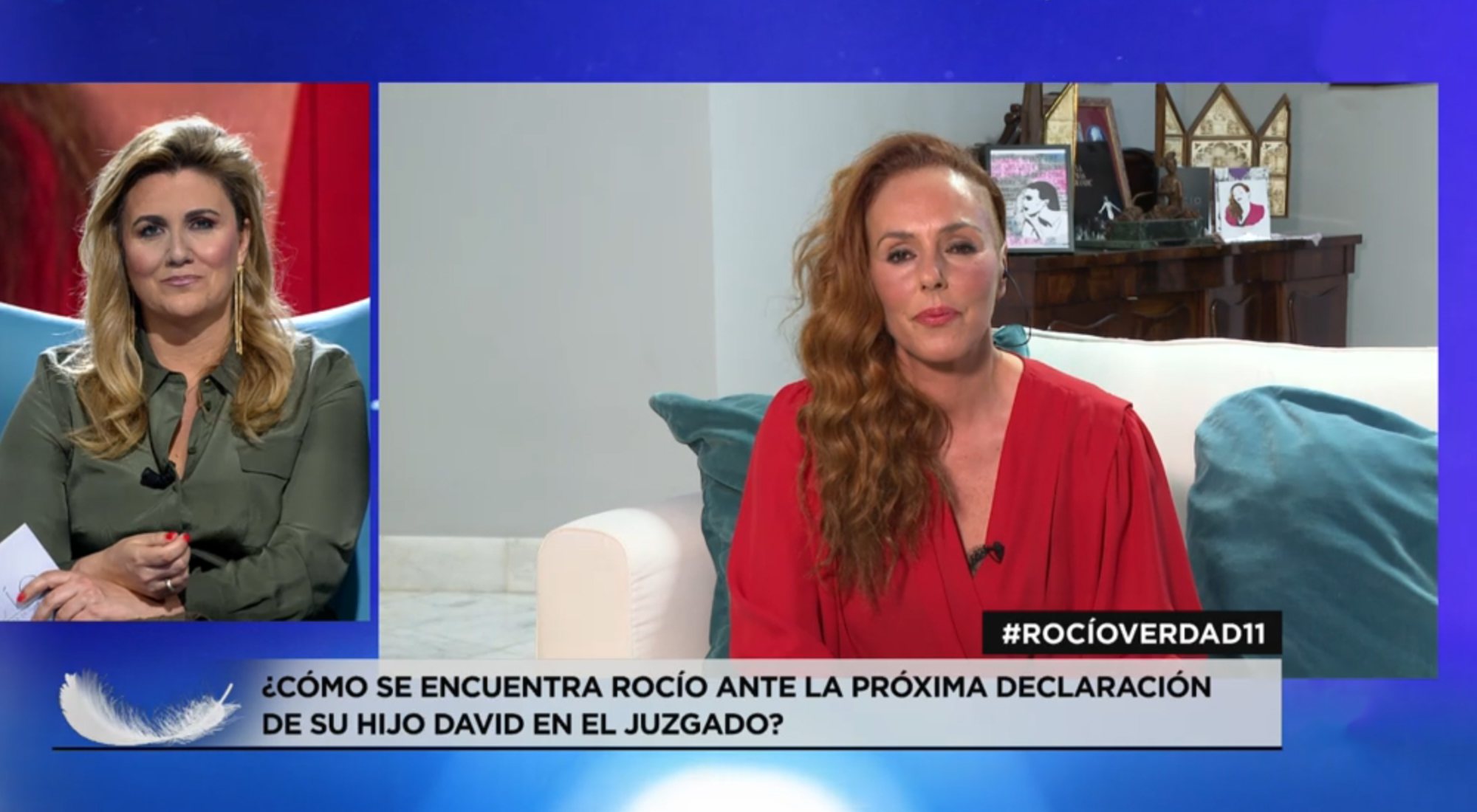 Antes de hablar con Carrasco, Carlota adelantó que el episodio once recoge cómo "Rocío describe la manera en la que Antonio David se aprovecha de los trámites judiciales y de la lentitud de la Justicia, para seguir maltratándola". "Hablo de pasado y también de presente, porque este mismo viernes, vamos a asistir a un nuevo show judicial, auspiciado por Antonio David, cuya primera consecuencia es que su hijo David, un joven con capacidades especiales, va a tener que declarar ante el juez", declaró la presentadora. "Antes de que los negacionistas vespertinos y matutinos se froten las manos y rabien contra Rocío culpándola de todo, vamos a hablar aquí con ella para que nos dé algunas claves de la nueva trama de Antonio David", aclaró a gallega, quien charló con Carrasco a través de una intervención en directo. "¿Por qué está citado?", preguntó Corredera, sobre el hijo menor de la invitada. "Porque el ser ha vuelto a hacer, otra vez, lo que intentó hacer con Rocío", respondió la madrileña.
