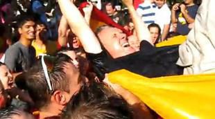 Lorenzo Milá es manteado por aficionados españoles en Washington